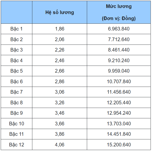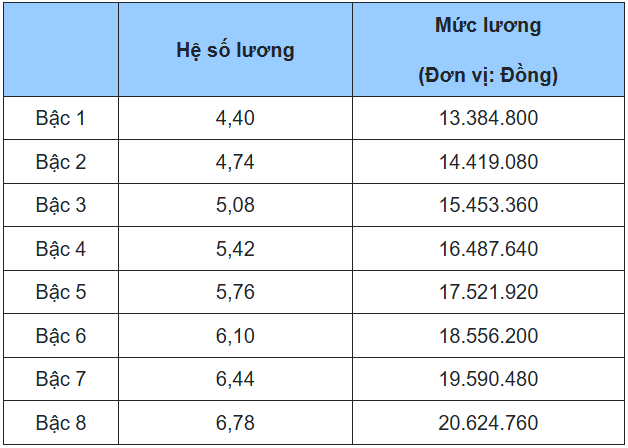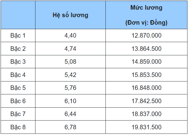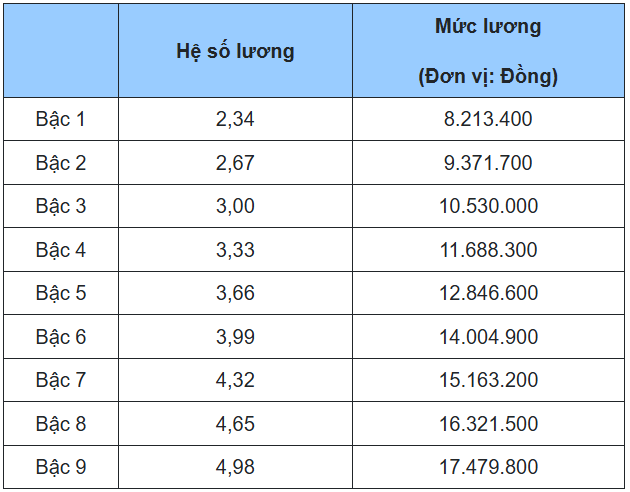 4. Bảng lương giáo viên trung học cơ sở, tiểu học, mầm non cao cấp, các chức danh tương đương khác