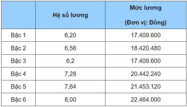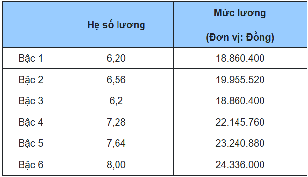 6. Bảng lương giáo viên dự bị đại học chính, giáo viên trung học phổ thông chính, giáo viên giáo dục nghề nghiệp chính, các chức danh tương đương khác
