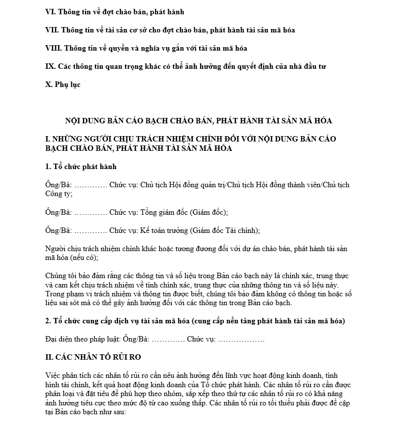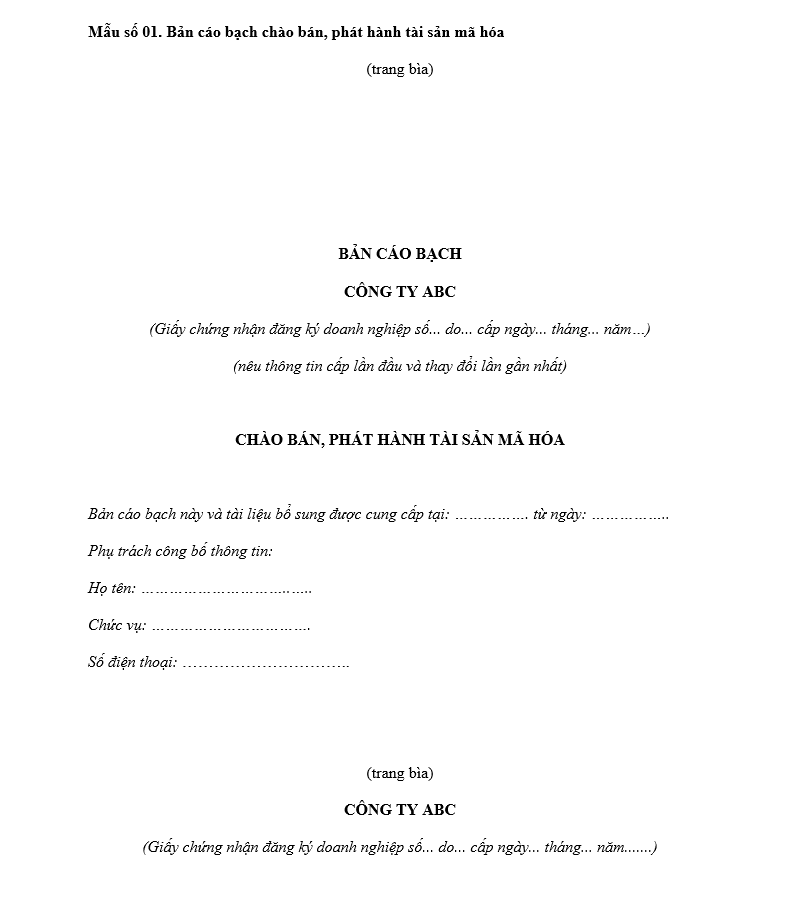 Mẫu số 01 - Bản cáo bạch chào bán, phát hành tài sản mã hóa