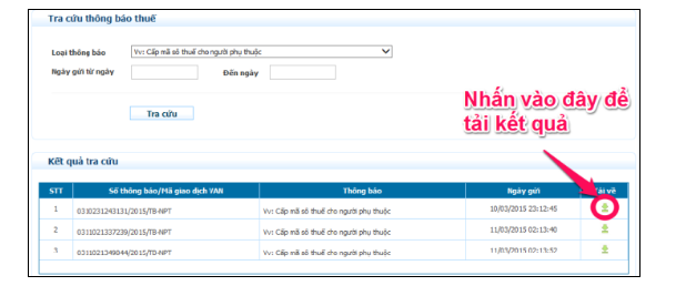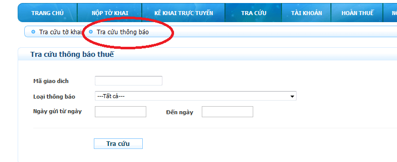 - Đăng nhập vào nhantokhai.gdt.gov.vn chọn mục tra cứu à tra cứu thông báo.