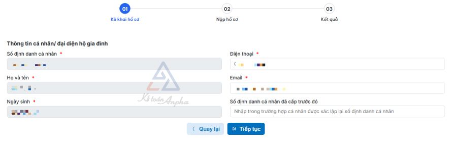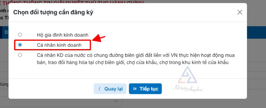 Tích chọn “ Cá nhân kinh doanh” ➞ Nhấn “Tiếp tục”.