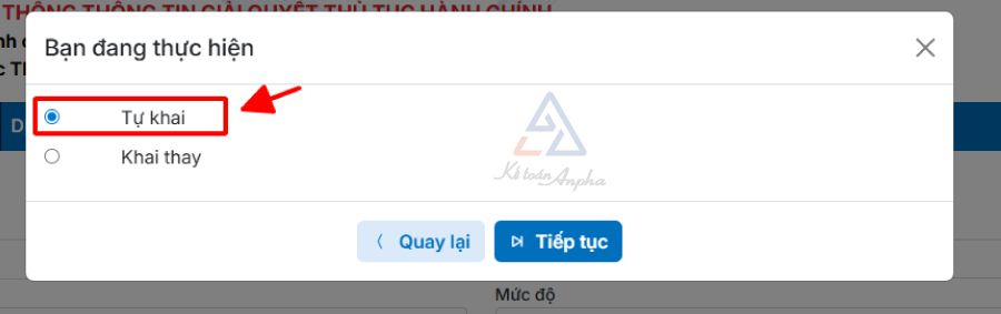 Tích chọn “Tự khai” ➞ Nhấn “Tiếp tục”.