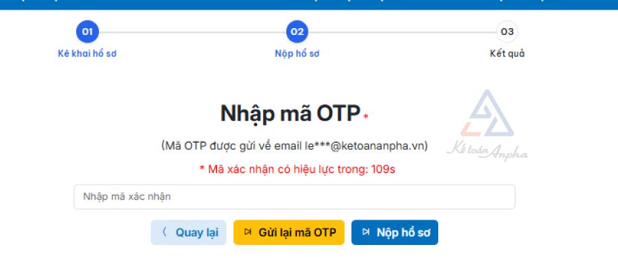 Mã OTP sẽ được gửi về mail, bạn nhập mã OTP và nhấn nút “Nộp hồ sơ”.