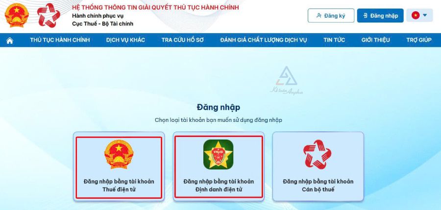 Đầu tiên, người nộp thuế cần đăng nhập vào Cổng dịch vụ công thuế nhà nước theo 1 trong 2 cách: