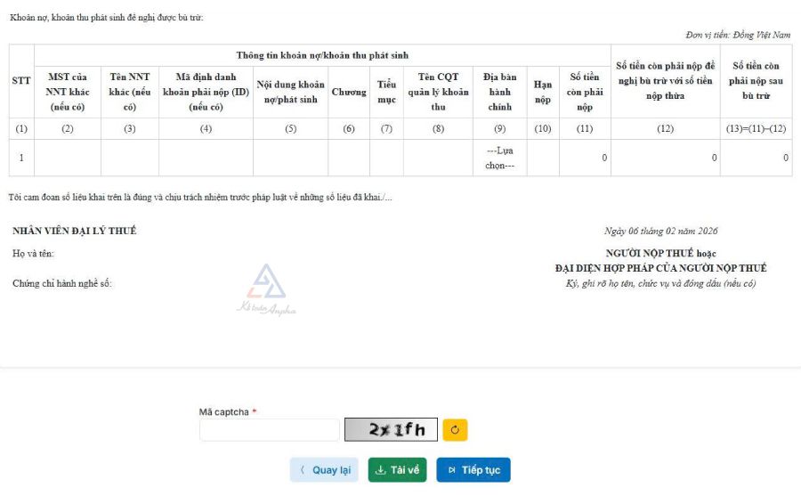 - Nếu thông tin trên tờ khai đã đúng: Bạn nhập mã captcha, tải tờ khai về và nhấn “Tiếp tục” để nộp tờ khai;