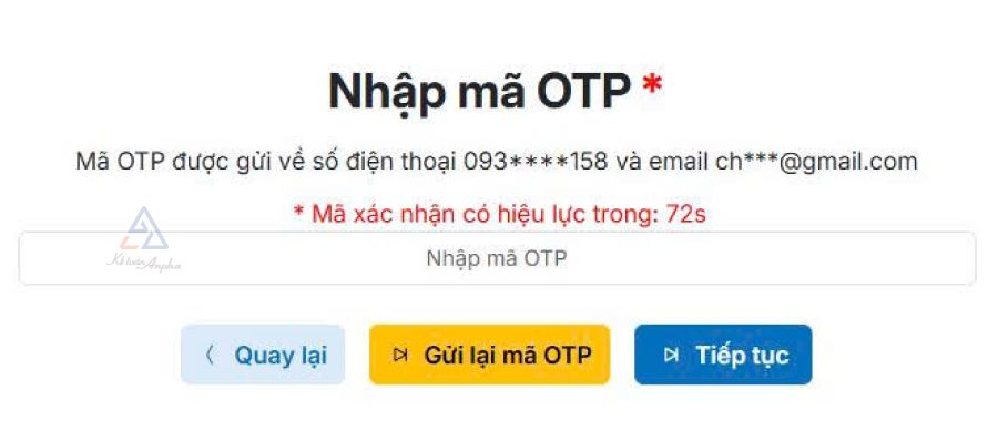 Cuối cùng, bạn nhập mã OTP được gửi về số điện thoại hoặc email đã đăng ký.