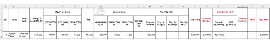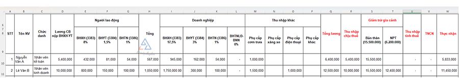 2. Ví dụ và công thức tính lương trong Excel, hàm tính lương thưởng trong Excel