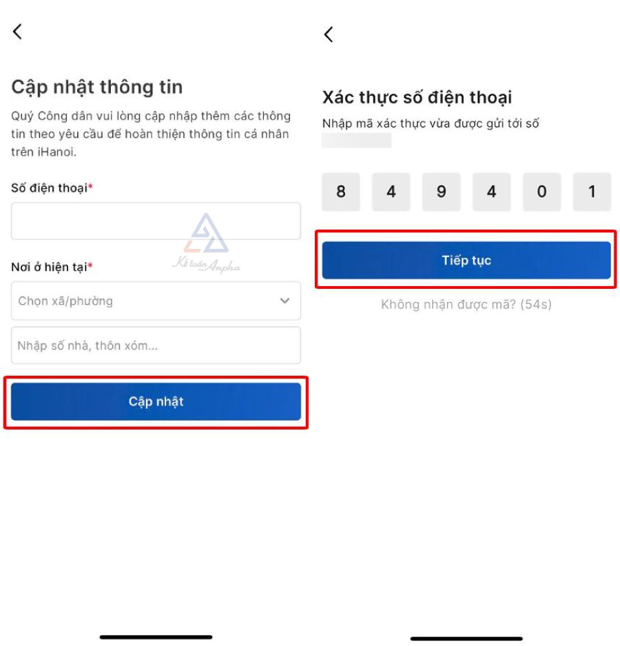 Trường hợp chưa có tài khoản, hệ thống sẽ hiển thị giao diện cập nhật thông tin như hình bên dưới. Bạn nhập đầy đủ thông tin ➜ Bấm “Xác nhận” ➜ Nhập mã OTP gửi về số điện thoại và bấm “Tiếp tục”.