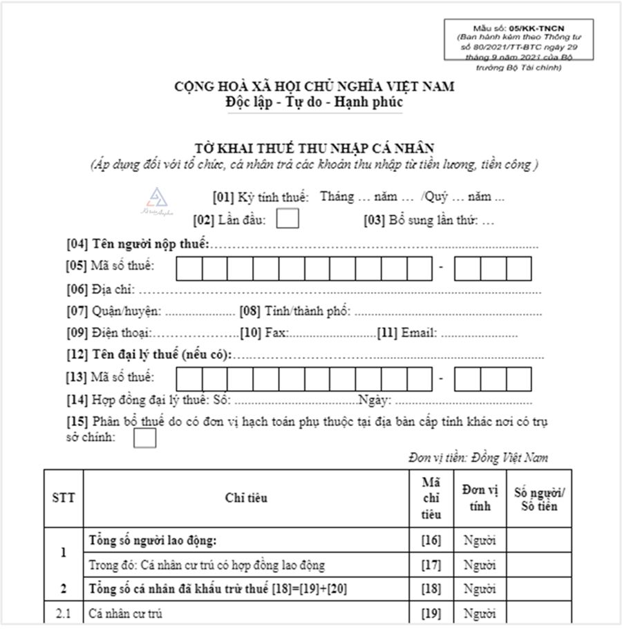 >> TẢI MIỄN PHÍ: Mẫu số 05/KK-TNCN: Tờ khai thuế thu nhập cá nhân.