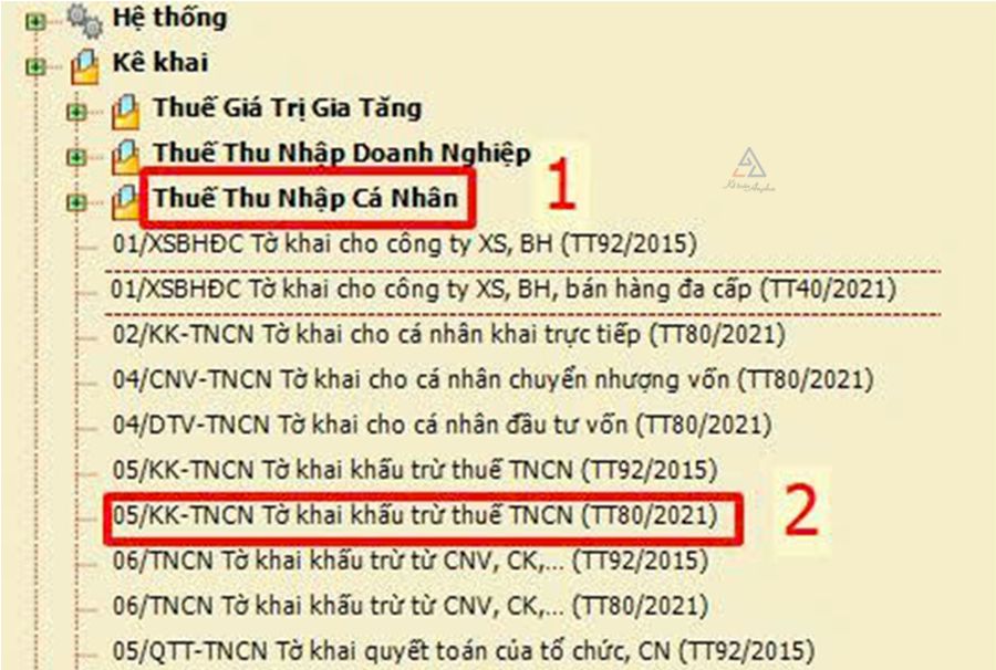 - Chọn “05/KK-TNCN Tờ khai khấu trừ thuế TNCN (TT80/2021)”.