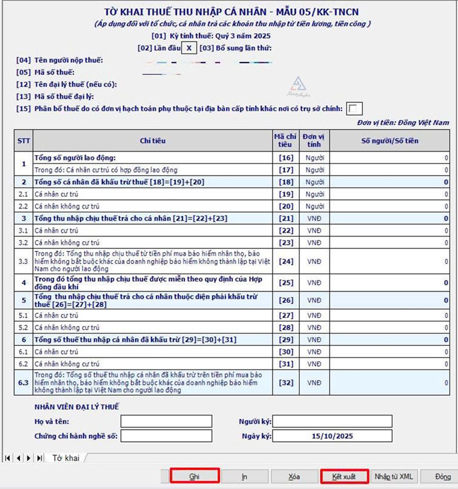 4. Bước 4: Lập tờ khai thuế TNCN mẫu 05/KK-TNCN