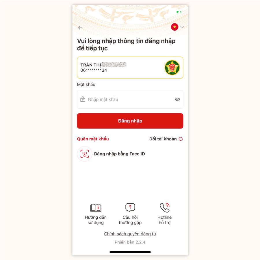 - Bước 2: Đăng nhập tài khoản ứng dụng VNeID của công dân;