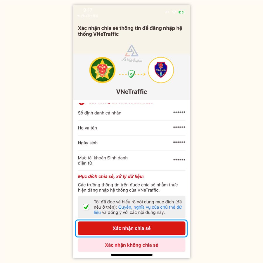 - Bước 3: Tick vào ô “Tôi đã đọc và hiểu rõ nội dung mục đích…” → Nhấn “Xác nhận chia sẻ”;