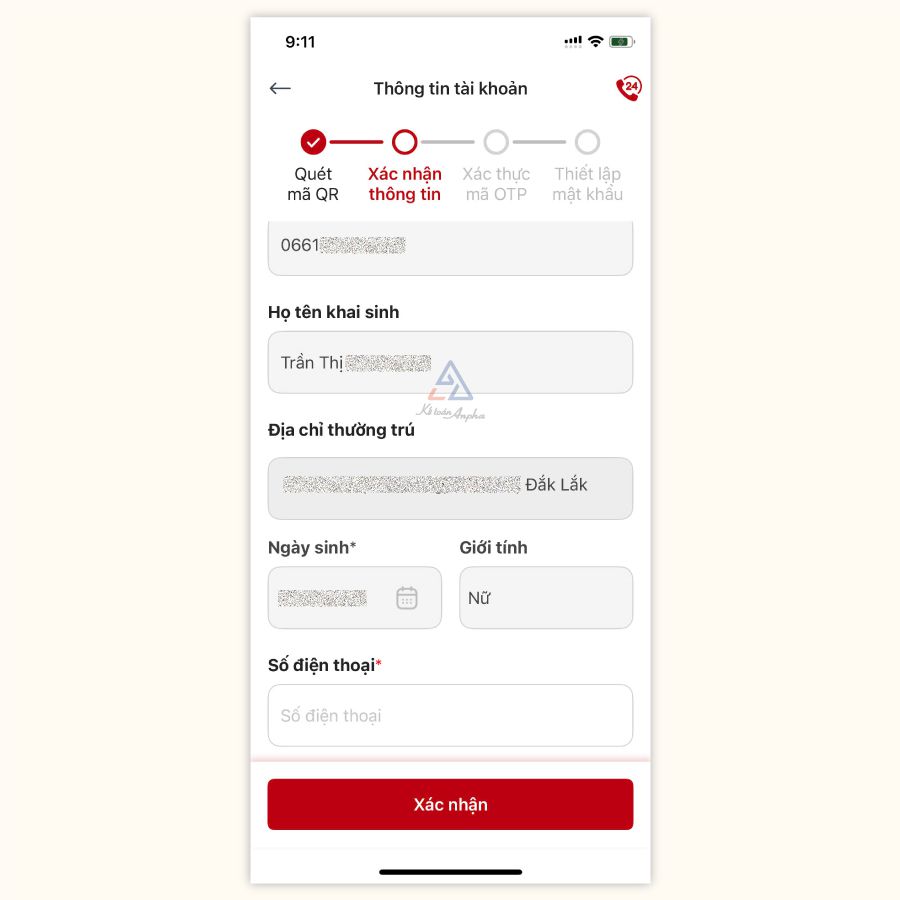 Bước 5: Tại màn hình lúc này, công dân nhập đầy đủ các thông tin cá nhân và số điện thoại của mình → Nhấn chọn “Xác nhận” để đăng ký tài khoản VNeTraffic.