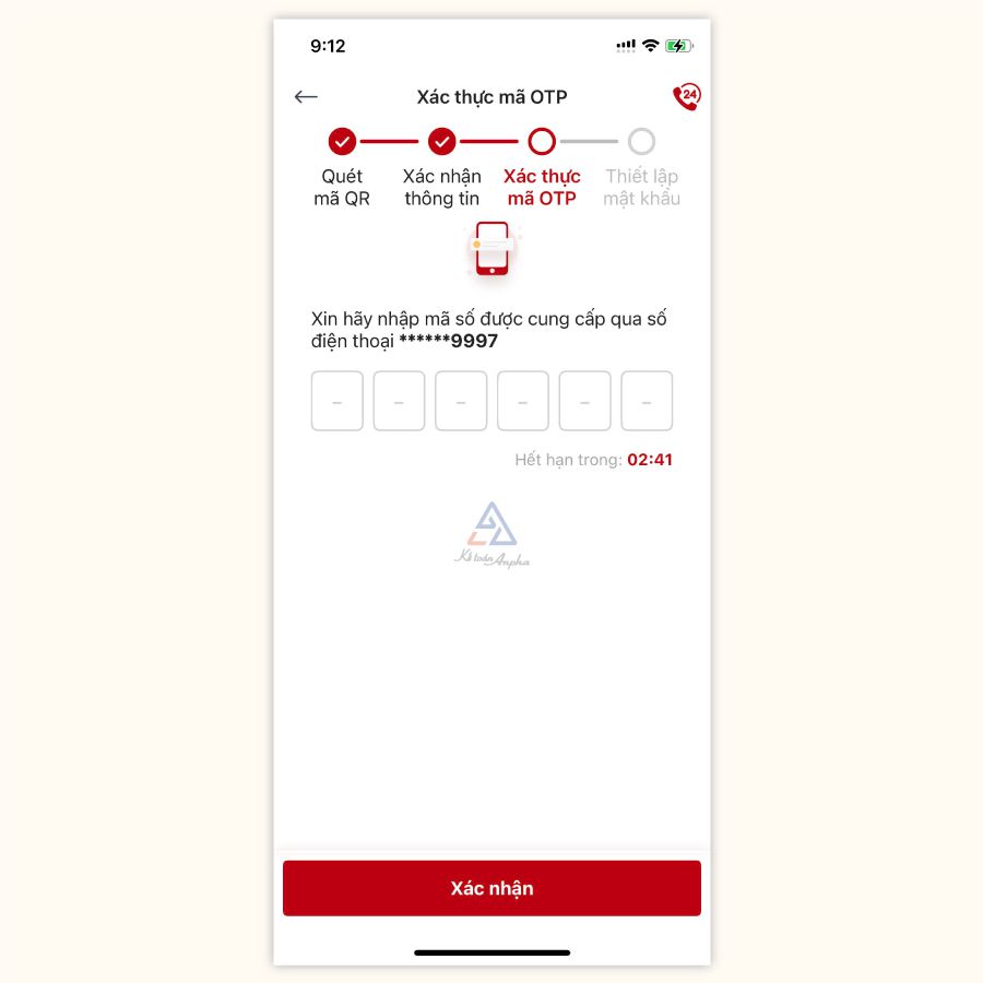 - Bước 6: Nhập mã xác thực được gửi về số điện thoại;