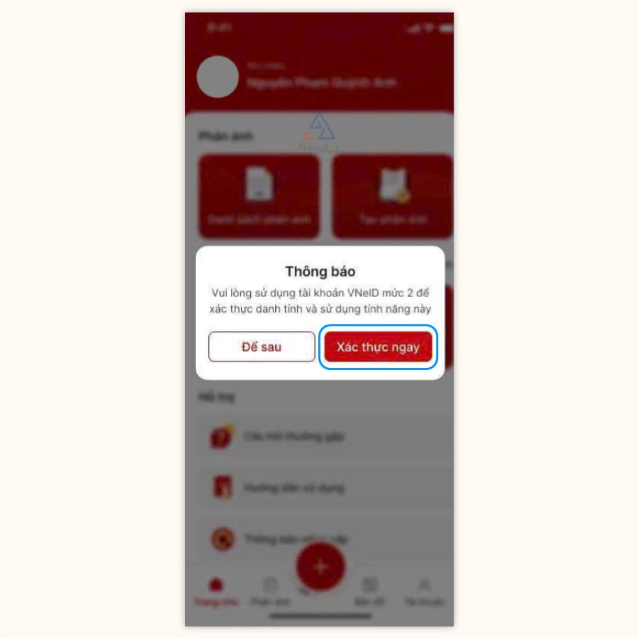 Bước 3: Ứng dụng sẽ yêu cầu sử dụng VNeID để xác thực danh tính, tại đây cá nhân nhấn chọn “Xác thực ngay”.