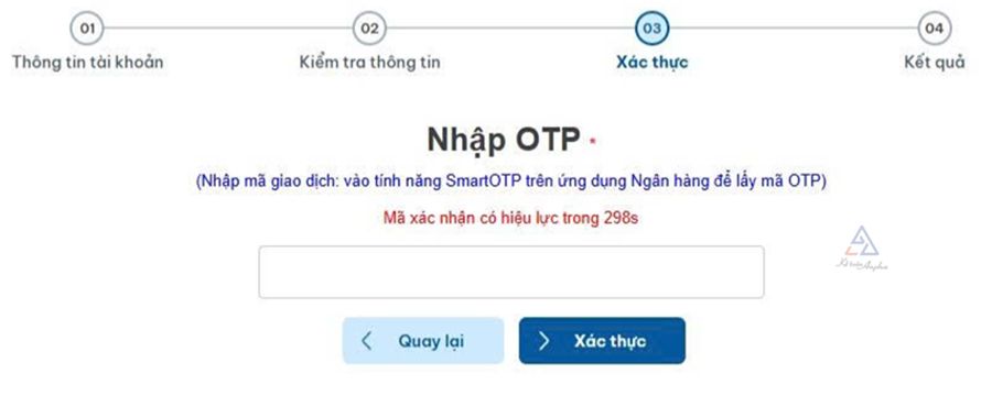Cá nhân thực hiện nhập mã OTP mà ngân hàng gửi về tin nhắn SMS điện thoại hoặc gửi về ứng dụng ngân hàng → Nhấn “Xác thực”.