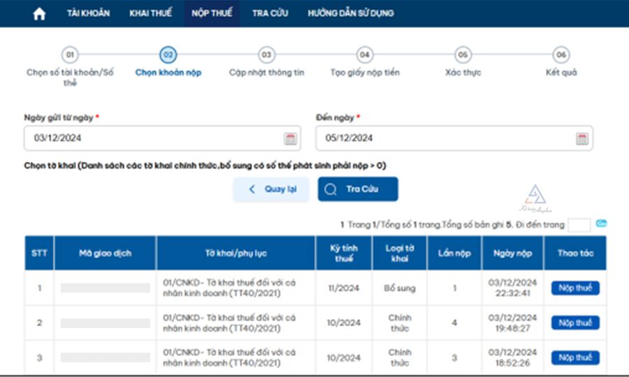 Bước 3: Tra cứu các khoản thuế phải nộp