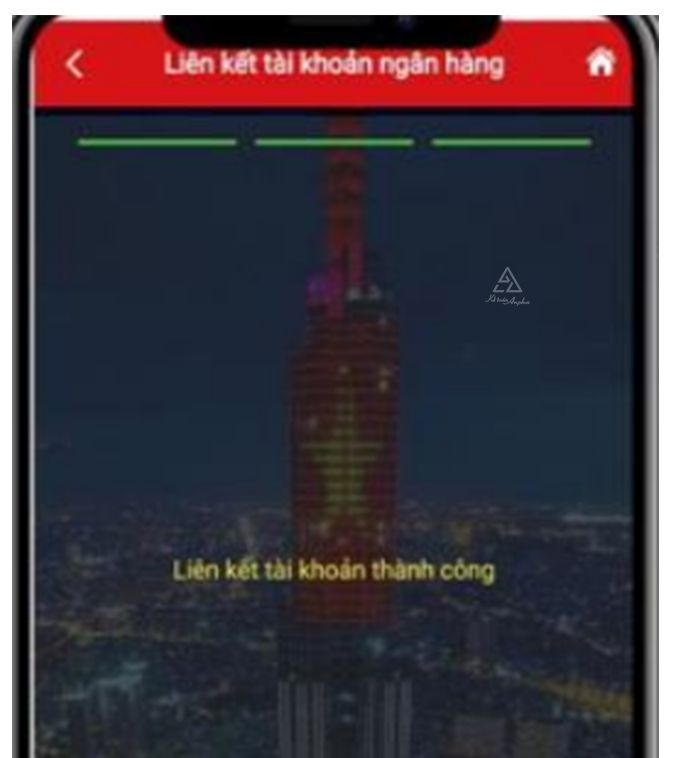 Nếu mã OTP hợp lệ màn hình sẽ hiển thị thông báo “Liên kết tài khoản thành công” như hình bên dưới.