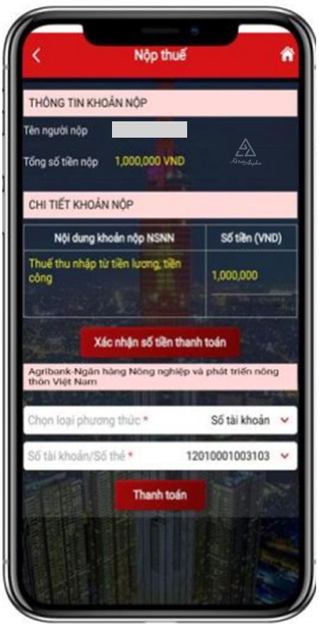 Sau khi chọn xong phương thức thanh toán → Nhấn “Thanh toán” để thực hiện thanh toán tiền thuế.