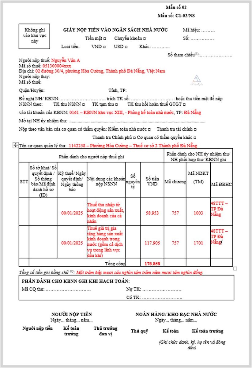 >> TẢI MẪU MIỄN PHÍ: Giấy nộp tiền vào ngân sách nhà nước - Mẫu C1-02/NS.
