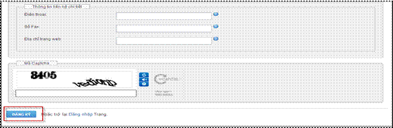 - Nhập mã Captcha à Nhấn nút [Đăng ký] để gửi yêu cầu đăng ký tài khoản (Hình 5);