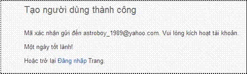Hình 8: Màn hình kích hoạt tài khoản thành công