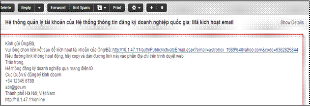 - Đăng nhập vào địa chỉ email đã đăng ký, mở email kích hoạt tài khoản mà Hệ thống đã gửi à Nhấn vào đường dẫn kích hoạt tài khoản và hoàn tất quá trình đăng ký tài khoản (Hình 7);