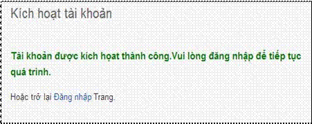 - Trong trường hợp kích hoạt thành công, Hệ thống hiển thị thông báo tài khoản đã được kích hoạt thành công (Hình 8).