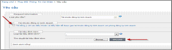Bước 5: Chọn và tải tài liệu chứng thực cá nhân: Nhấn nút [Browse] để tìm kiếm tài liệu chứng thực cá nhân à Nhấn nút [Upload] để tải tài liệu (Hình 10);