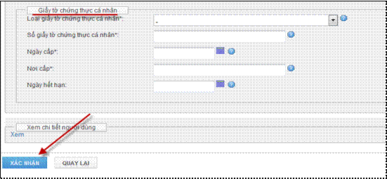 Hình 11: Màn hình hiển thị các thông về Giấy tờ chứng thực cá nhân và Nút [Xác nhận]