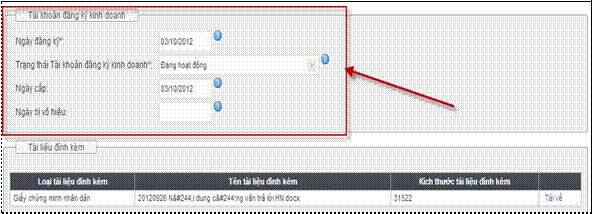 Hình 12: Màn hình hiển thị thông tin về Tài khoản đăng ký kinh doanh