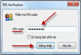 ·Nhập mã PIN;Khi hệ thống thông báo viêc ký số thành công, nhấn nút [Đóng].