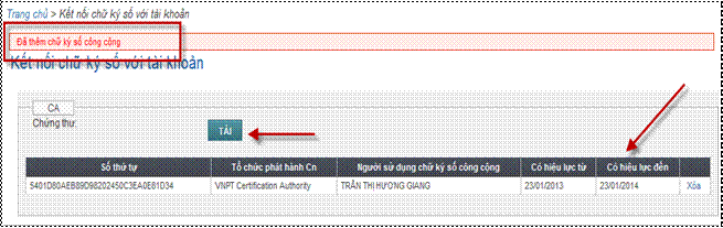 2.2. Kết nối chữ ký số công cộng với tài khoản
