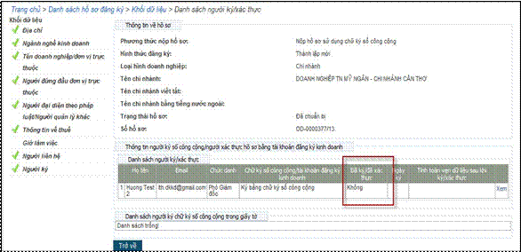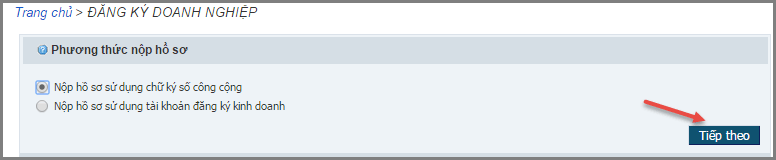 - Nếu người nộp hồ sơ/người đăng ký chọn phương thức nộp hồ sơ sử dụng chữ ký số công cộng -> tất cả các cá nhân ký số lên hồ sơ đều phải ký hồ sơ bằng chữ ký số công cộng (Hệ thống không cho phép cá nhân có Tài khoản đăng ký kinh doanh ký lên hồ sơ này).