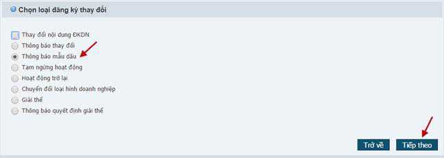 - Sau khi hồ sơ đã được nộp trực tuyến, Phòng Đăng ký kinh doanh xem xét để xử lý hồ sơ do doanh nghiêp nôp̣ . Trong trường hợp hồ sơ đăng ký qua mạng hợp lệ, người nộp hồ sơ sẽ nhân đươc email thông báo tại địa chỉ email đã đăng ký. Đối với hồ sơ thông báo mẫu dấu, doanh nghiệp không cần nộp hồ sơ bằng bản giấy đến Phòng Đăng ký kinh doanh.