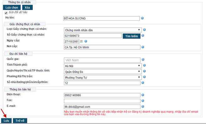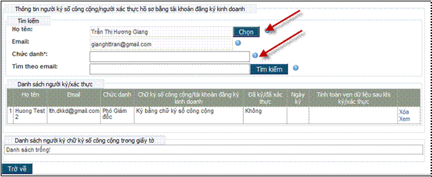 - Để tìm kiếm được thông tin về cá nhân chịu trách nhiệm ký hồ sơ đăng ký doanh nghiệp theo địa chỉ email, địa chỉ email cần phải: