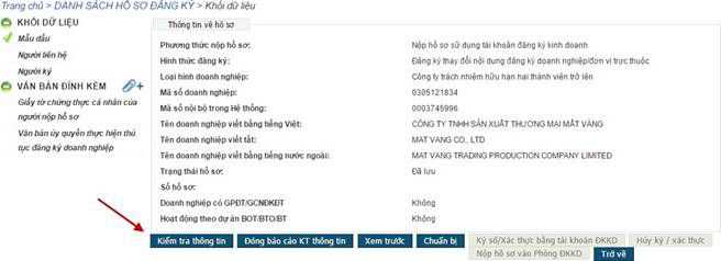 - Nhấn nút [Kiểm tra thông tin] để kiểm tra lại thông tin hồ sơ (Hình 33):