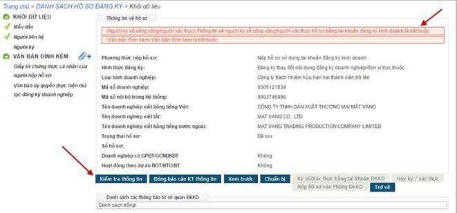- Nhấn nút [Kiểm tra thông tin] để kiểm tra xem các thông tin cần nhập đã đầy đủ và đúng theo yêu cầu (Hình 33);