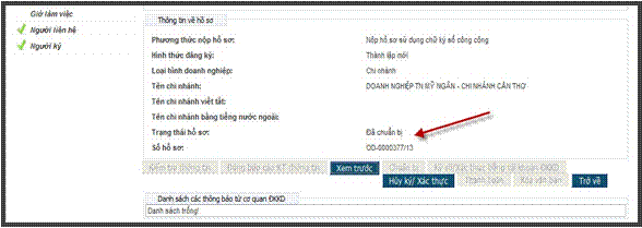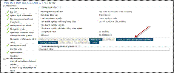 VII. Ký số/ Xác thực hồ sơ đăng ký doanh nghiệp qua mạng điện tử