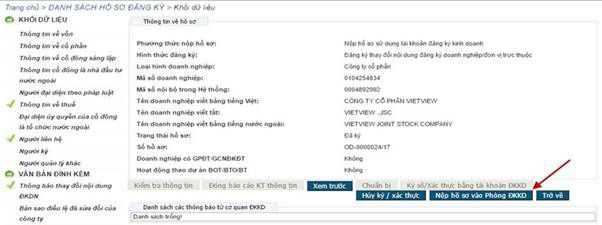 Hình 41: Bấm nút nộp hồ sơ vào Phòng ĐKKD