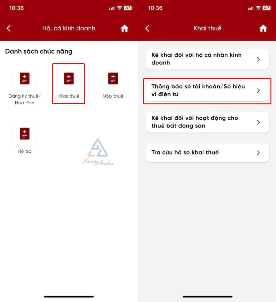 Ngoài cách thông báo số tài khoản online trên dịch vụ công, hộ kinh doanh có thể thông báo ngay trên điện thoại thông qua ứng dụng eTax Mobile theo trình tự bước sau: