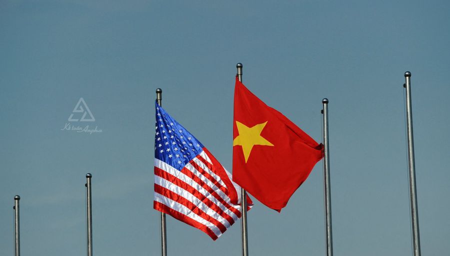 2. Khi treo cờ Việt Nam cùng cờ một nước khác thì cờ Việt Nam phải đặt bên phải và cờ nước khác đặt bên trái theo hướng từ trước nhìn vào.