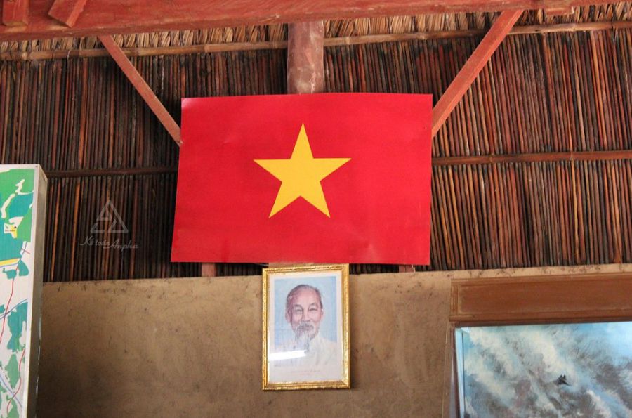 4. Khi treo cờ Việt Nam cùng ảnh Chủ tịch Hồ Chí Minh thì đặt ảnh thấp hơn cờ hoặc đặt ảnh trên nền cờ dưới ngôi sao.