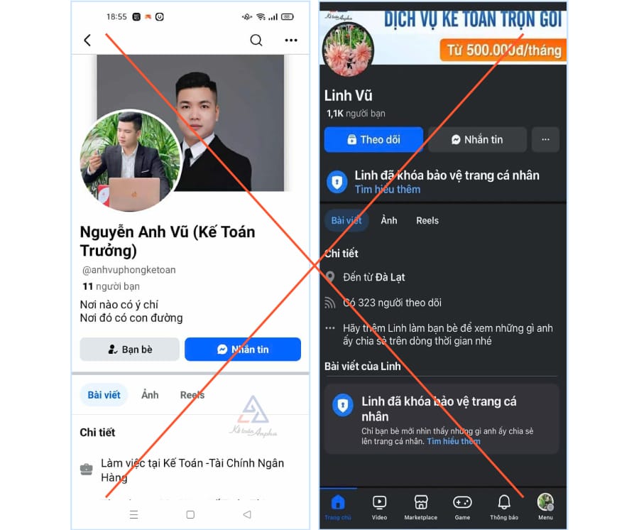 Tài khoản Facebook mạo danh nhân viên kế toán trưởng của Anpha để lừa đảo khách hàng