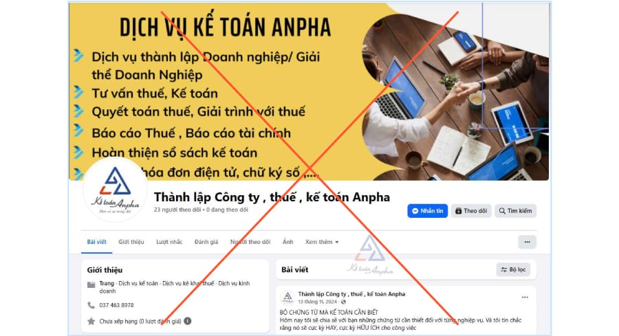 Fanpage giả mạo Kế toán Anpha