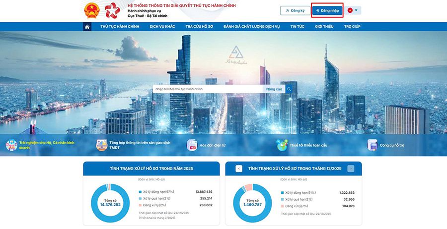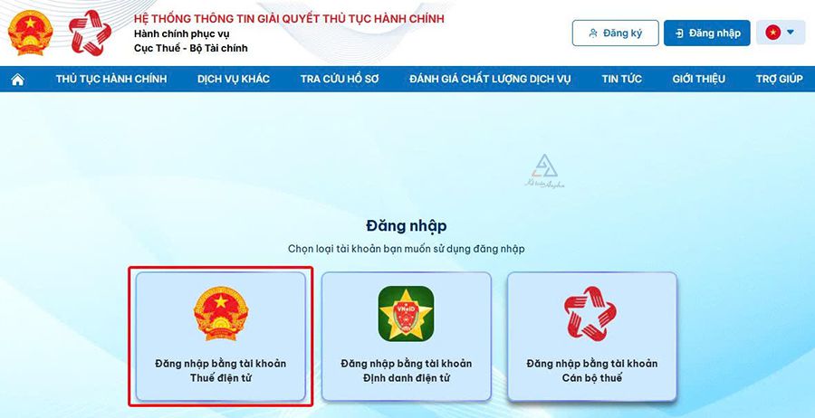 Bước 1: Đăng nhập Hệ thống thông tin giải quyết thủ tục hành chính của Cục Thuế