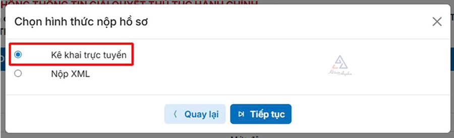 ➧ Chọn Kê khai trực tuyến ➜ Ấn “Tiếp tục”;