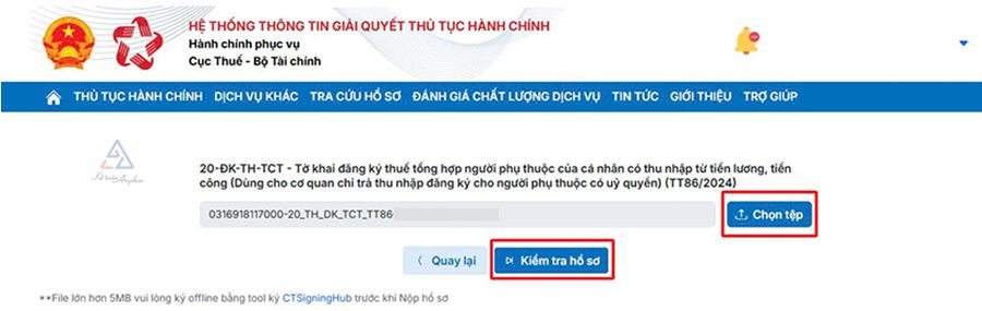 ➧ Ấn “Chọn tệp” ➜ chọn file XML đã lưu về máy ➜ Ấn “Kiểm tra hồ sơ”;