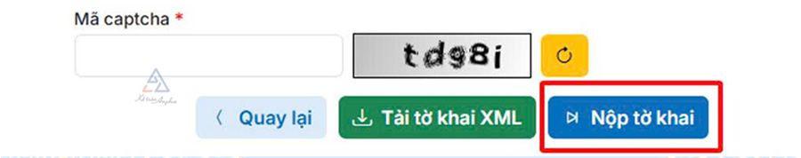 ➧ Nhập mã captcha ➜ Ấn “Nộp tờ khai”;